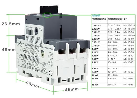 ABB MS116 Manual Motor Starters 3 Pole 0.1~32A 230/400V 440V Icu up to 50kA in compliance with IEC 60947