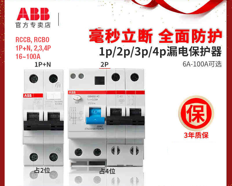 ABB GSH RCCB,RCD - Residual Current Circuit Breaker 1~100A, 2P,3P,4P,1P+N for electrical distribution IEC 61009
