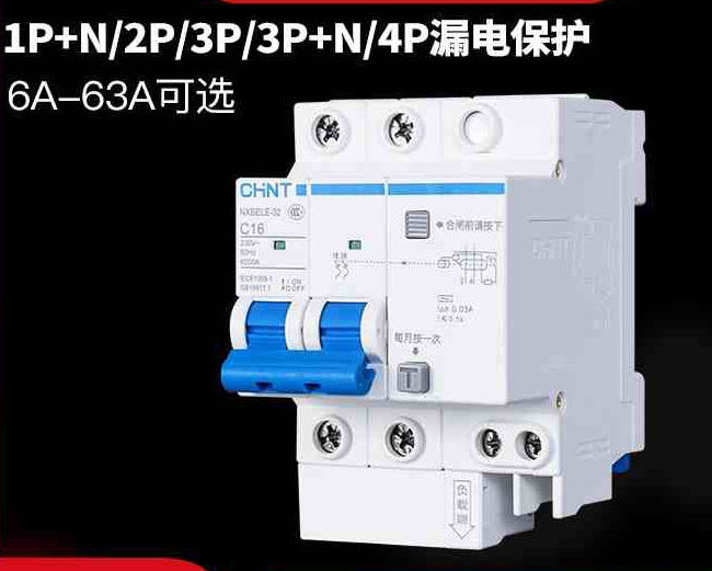 Chint NXBLE Earth Leakage Circuit Breaker with Overload Protection 6~63A 1P,2P,3P,4P for AC230/400V Use