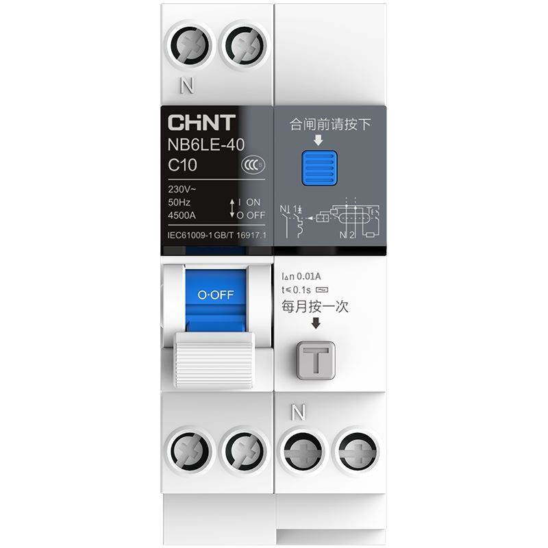 Chint NB6LE-40 Earth Leakage Circuit Breaker with Overload Protection 10~40A 1P+N for AC230/400V Use