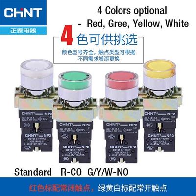 CHINT NP2 Series Push Button Switch Illuminated, flush head Red,Green,Yellow,White 12v,24v,110v,230v 1NO1NC AC380VDC220V