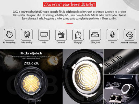 LED 400W Pro Portable Photography Spotlight Manual or DMX512 control with Hight CRI Index 200w 3200k+200w 5600k