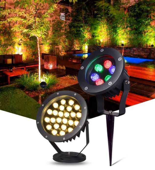Outdoor Waterproof LED Landscape Lighting IP65 3/6/9/12/18/24/36W white or RGB 12v/24v for Grassland, Color trees