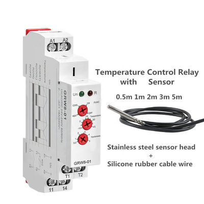 RW8-01 Din rail Temperature Control Relay AC DC 24V-240V Wide Range Voltage with Waterproof Sensor
