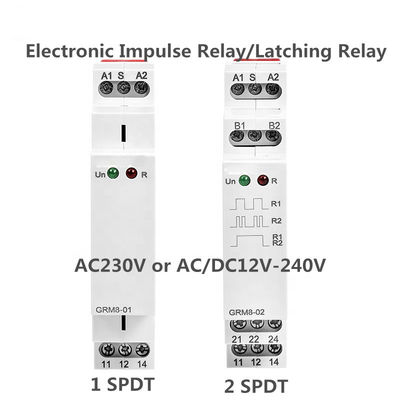 RM8 DIN Rail AC/DC 12-240V 16A Step Reset Relay PCB Relay 24vdc Latching Relay