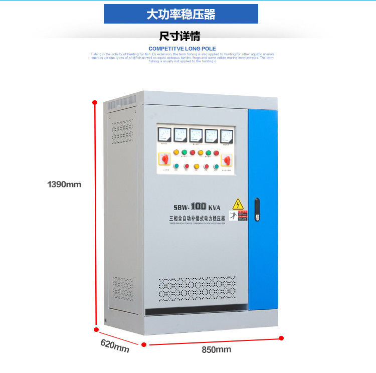 SBW series single-phase and three phase full-automatic compensation power voltage stabilizer(hereafter call voltage stabilizer) is a contact adjustable stabilizer,application when outside electricity power fluctuation or load power all time difference rebellious voltage fluctuation,this stabilizer can automatic keep output voltage stabilization,this series products compare with other stabilizer have as follow feature:have big capacity,efficiency very high, non-lack fidelity in wave distortion,the voltage adjustable balance,self-cooling and successively working for long period and long service time,can endure instantaneous over-load,as well as transferring between manual control and automatic control system,besides it is provided with protection over-voltage,over-load(over-current),lack phase or phase fail,phase sequence protect and mechanical breakdown automatic protect,EMI and surge protector and has following merites:small volume,light weight.convenient installation and reliable running and so on(pin meter display and digital display),
