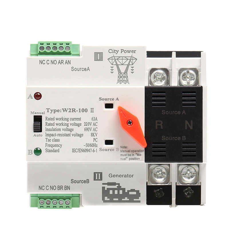 Fast Operation 2P Automatic Transfer Switch Dual Power 230V Solar Grid 16A 20A 25A 32A 40A 50A 63A 80A