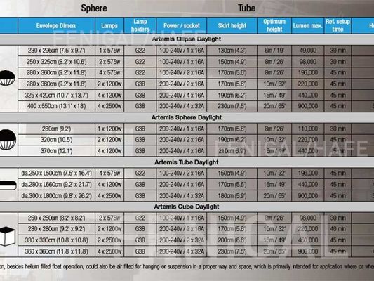| Light Source: | HMI, LED, Tungsten Halogen | Balloon Material: | Nylon Fabric Treated + Compound |