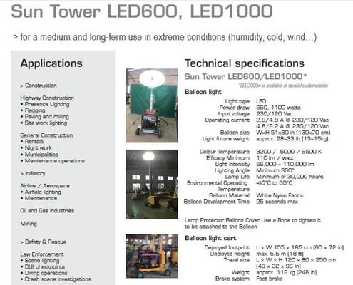 Sun series balloon light is mainly intended for specific application in construction, industrial, safety & rescue etc. industries.