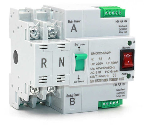 (PC-grade) excitation dual power automatic transfer switch is a newly developed miniature household power transfer switch. The switch is mainly used to test whether the main or backup power supply is normal. When the normal power supply is abnormal, the standby power supply will start working immediately, thus ensuring the continuity, reliability and safety of the power supply. It is designed for use in domestic rail-mounted installations, specifically in the PZ30 distribution box.